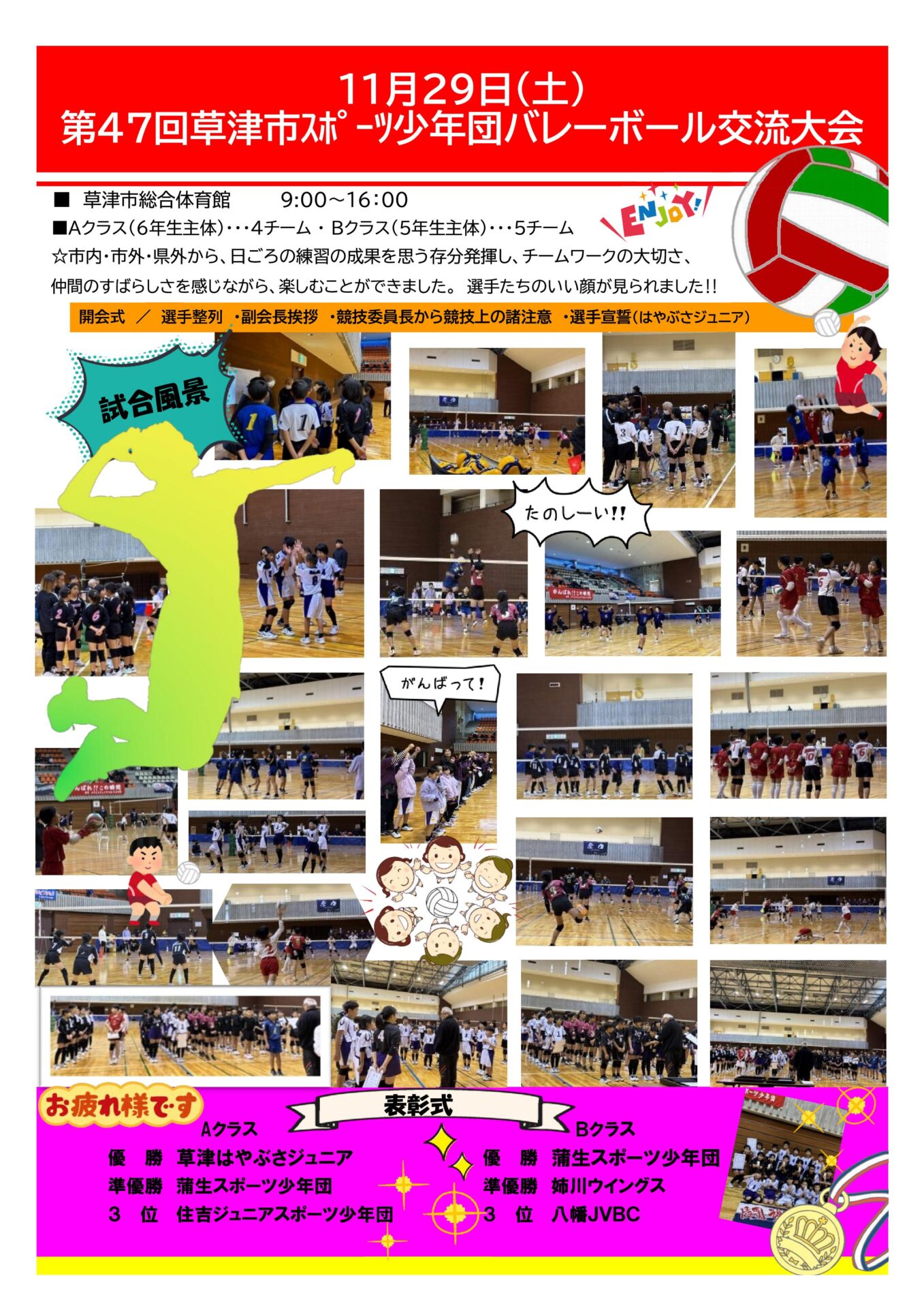 優 勝:草津はやぶさジュニアスポーツ少年団